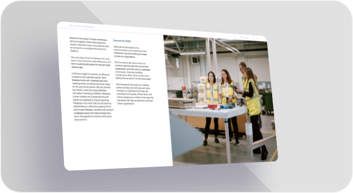 R&D Activities and Digitalization Go to contents 31 Based on the output of these workshops, Focuses for 2023 and our analysis of the initial issues the project realisation teams had experienced, 2023 will be dedicated to the we prepared a new Agile Framework for implementation and monitoring of this Staticus. framework, and the scaling up of Agile across our organisation. The main idea of this framework is for us to work in short iterations called Releases, and This framework will ensure there are then to periodically apply the relevant Agile common planning practices across the ceremonies. organisation, and that work is undertaken at one pace. It will also facilitate In Staticus’ Agile framework, one Release transparency within all our teams, and a is equal to one calendar quarter. Each feeling that we are all “on the same page”. Release starts with a Release planning meeting where we define key focus areas This framework will assist us in setting for the upcoming quarter. We also identify better priorities and will help each team key results, roles and responsibilities, member to understand how they can and ways of working (or WoW). A Release contribute to the goals of their team, and is then divided into 2-week Sprints with of the company as a whole. In this way, this stand-up meetings for status reporting. framework will help us become a purpose Feedback from both internal and external driven organisation. stakeholders is collected regularly. At the end of each Release, all teams will conduct a Release review and there will also be a team retrospective to ensure continuous improvement.