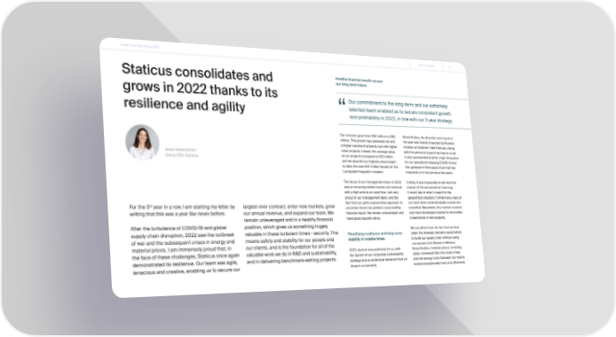 Letter From the Group CEO Go to contents 3 Healthy financial results secure Staticus consolidates and our long-term future grows in 2022 thanks to its Our commitment to the long-term and our extremely resilience and agility “talented team enabled us to secure consistent growth and profitability in 2022, in line with our 3 year strategy. Our turnover grew from €62 million to €80 Nevertheless, the direction and mood of million. This growth was delivered not with the year was heavily impacted by Russia’s a higher volume of projects, but with higher invasion of Ukraine in late February. Along value projects. Indeed, the average value with the personal impact this had on us all, Aušra Vankevičiūtė / of our projects increased to €15 million, it also represented another major disruption Group CEO, Staticus and we secured our highest value project for our operations following COVID-19 and to date, the over €47 million facade for the the upheaval in the supply chain that had Landspítali Hospital in Iceland. impacted us in the previous two years. The focus of our management team in 2022 Initially, it was impossible to tell what the was on ensuring stable income and revenue impact of the war would be: how long with a high priority on cash flow. I am very it would last or what it meant for the proud of our management team, and the geopolitical situation. Furthermore, many of fact that our quite conservative approach in our team were understandably scared and rd For the 3 year in a row, I am starting my letter by largest-ever contract, enter new markets, grow uncertain times has yielded a very healthy unsettled. Meanwhile, the markets reacted writing that this was a year like never before. our annual revenue, and expand our team. We financial result. We remain unleveraged and and many developers started to reconsider remain unleveraged and in a healthy financial have good liquidity ratios. investments in new projects. After the turbulence of COVID-19 and global position, which gives us something hugely We benefited from the fact that we had supply chain disruption, 2022 saw the outbreak valuable in these turbulent times - security. This Prioritising resilience and long-term taken the strategic decision years before of war and the subsequent crises in energy and means safety and stability for our people and stability in volatile times to build our supply chain without using material prices. I am immensely proud that, in our clients, and is the foundation for all of the companies from Russia or Belarus. the face of these challenges, Staticus once again valuable work we do in R&D and sustainability, 2022 started very positively for us, with Nevertheless, material prices, including the launch of our corporate sustainability glass, increased after the onset of war, demonstrated its resilience. Our team was agile, and in delivering benchmark-setting projects. strategy and an extensive rebrand (more on and the energy crisis followed. Our teams tenacious and creative, enabling us to secure our those in a moment). worked exceptionally hard and effectively
