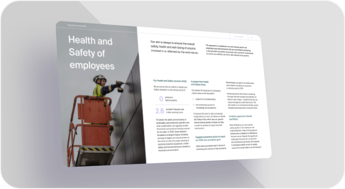 Corporate Sustainability Go to contents 13 Our aim is always to ensure the overall This approach is crystalised in our zero injuries goal for all Health and safety, health and well-being of anyone employees and subcontractors. We are committed to achieving a strong health and safety record each year, and work continuously involved in or affected by the work we do. to ensure our activities are in line with industry best practice. Safety of employees Our Health and Safety record in 2022 A people-first Health Nevertheless, our goal is to achieve zero and Safety Policy work-related accidents of any kind in We are proud that our efforts in Health and a calendar year by 2025. Safety resulted in a very strong record in Our people-first approach to workplace culture rests on two key pillars: Preventive action will be key to achieving this goal. We will increase the collection of serious or 01 respect for all stakeholders data on near misses - incidents that did not 0 fatal accidents cause damage but could have done. This 02 the continuous pursuit of will enable us to consistently identify unsafe knowledge and excellence. situations and take action to prevent them. accident frequency per 2.8 million working hours. To ensure this vision is also an everyday reality within our team, we follow our Health A holistic approach to Health To bolster the safety and well-being of and Safety Policy which lays out specific and Safety employees, subcontractors, partners, and actions that all parties involved can take other stakeholders, we regularly provide in order to achieve an injury-free work Here at Staticus, our zero injuries theoretical and practical training sessions environment. policy applies to all employees and for our team. In 2022, these sessions subcontractors. In fact, it is focused on focused on a range of topics, including anyone who is related to or affected by working at heights and rescue actions in Targeted preventive action to reach the work we do. Despite the significant the event of a fall, the proper wearing of our 2025 zero accidents goal challenges faced by the construction personal protective equipment, civilian and manufacturing industry with regards safety, and first aid training for workers in 2022 was a successful year in terms of to workplace safety, we aim to always hazardous environments. achieving zero serious or fatal accidents. ensure the overall health and well-being of